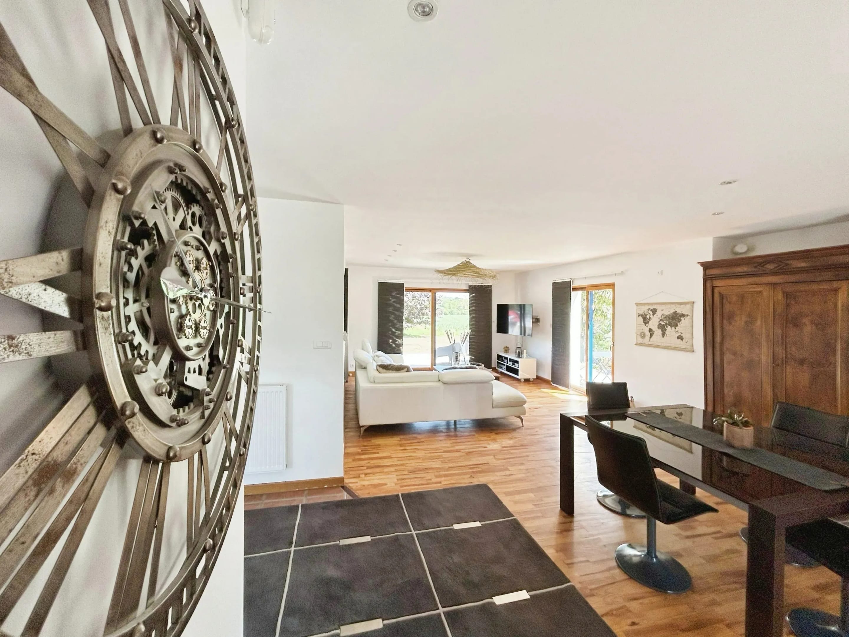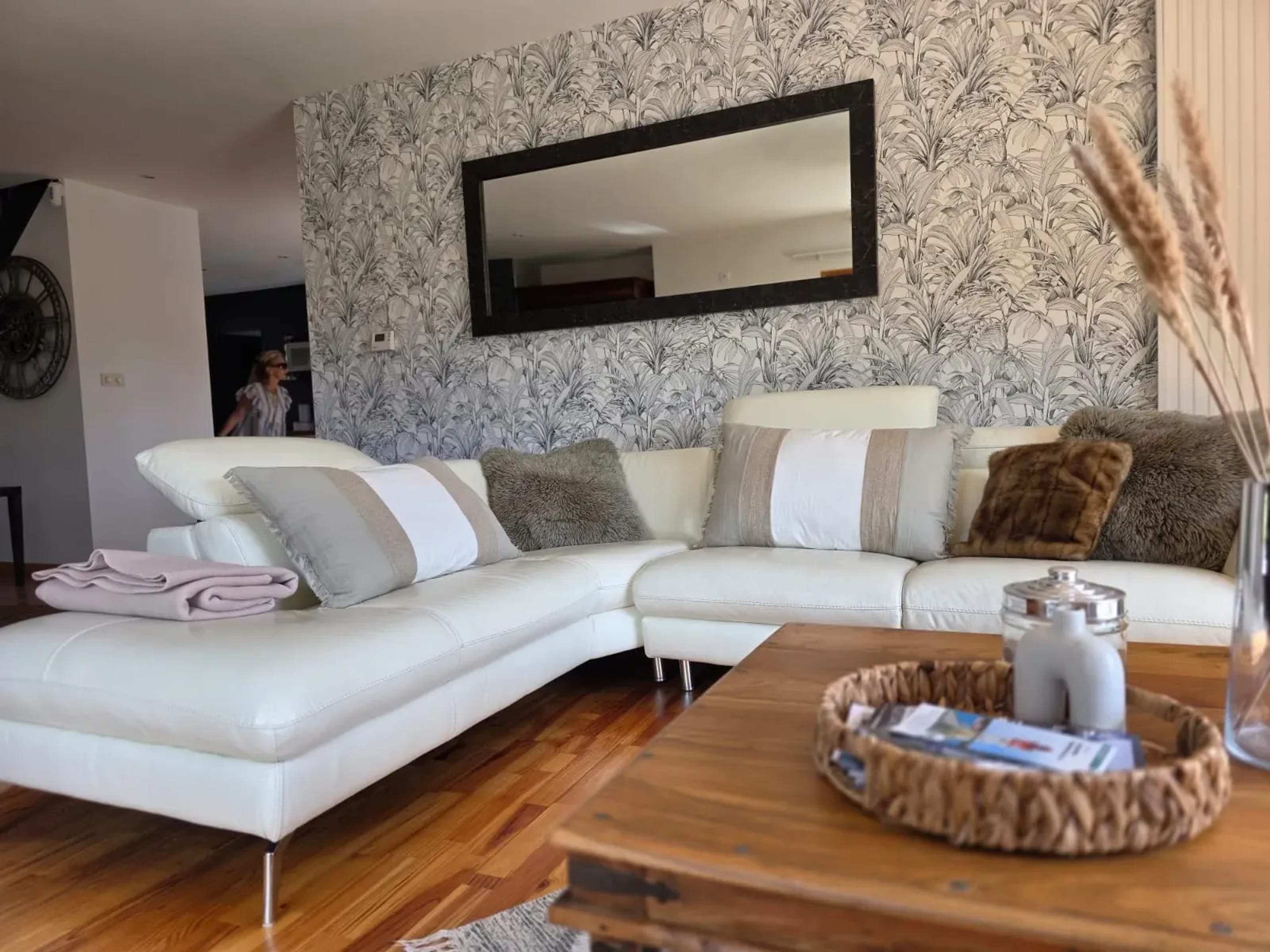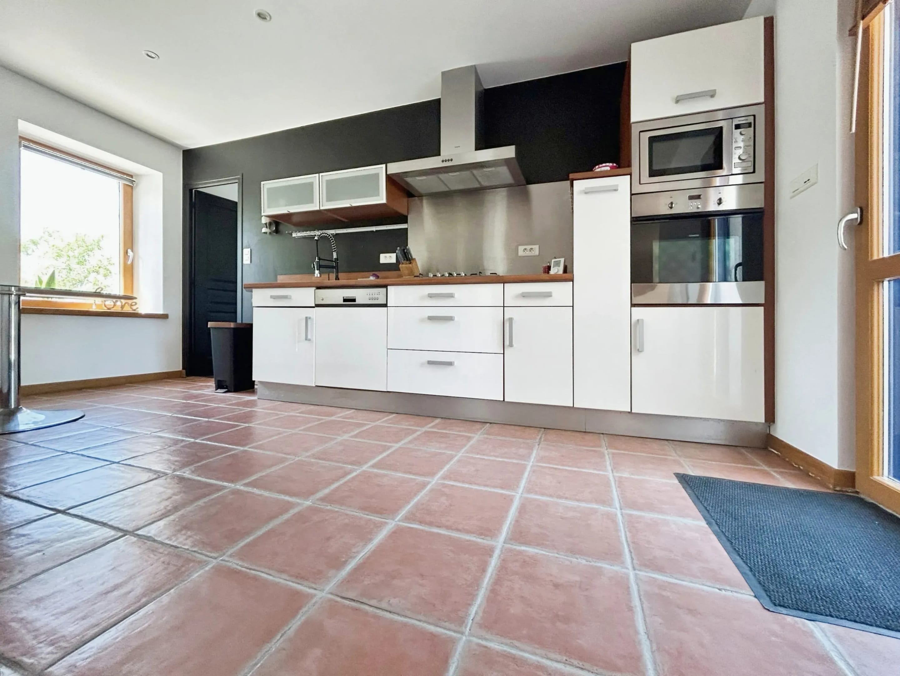 À l'intérieur, vous trouverez un espace de vie lumineux et accueillant, parfait pour se détendre. La cuisine spacieuse est entièrement équipée d'appareils modernes, dont un réfrigérateur de style américain, un four et un lave-vaisselle, vous permettant de préparer de savoureux repas. Il y a beaucoup de place pour des rassemblements familiaux à la table à manger.