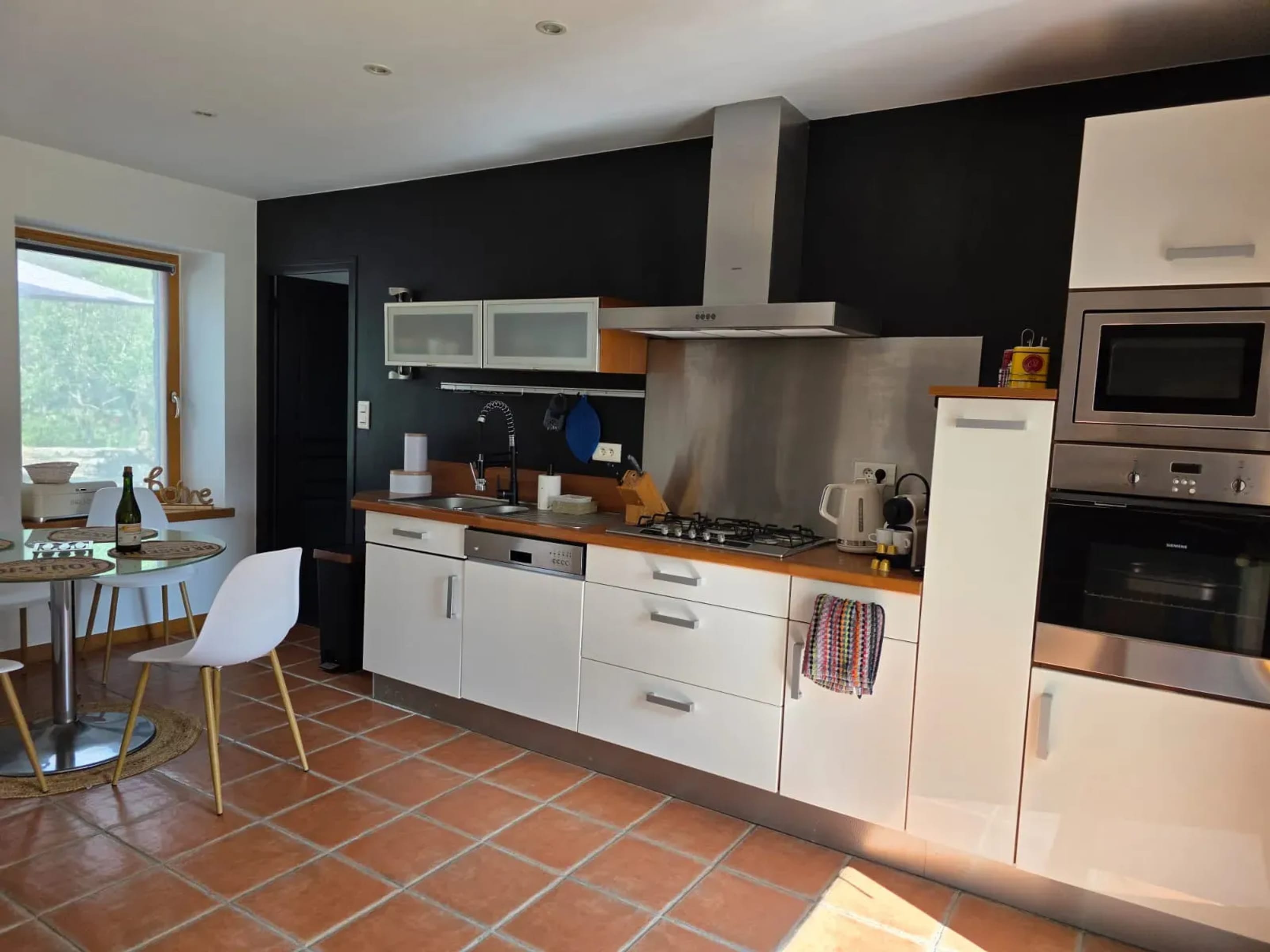 À l'extérieur, vous découvrirez une terrasse accueillante où vous pourrez vous détendre sur des transats et profiter de l'air frais. Un barbecue de grande qualité est à votre disposition, idéal pour cuisiner de manière informelle dans le jardin. Le jardin non clôturé est un lieu merveilleux pour profiter du soleil et de l'atmosphère paisible tout en observant les 2 chiens qui gambadent sur la propriété.